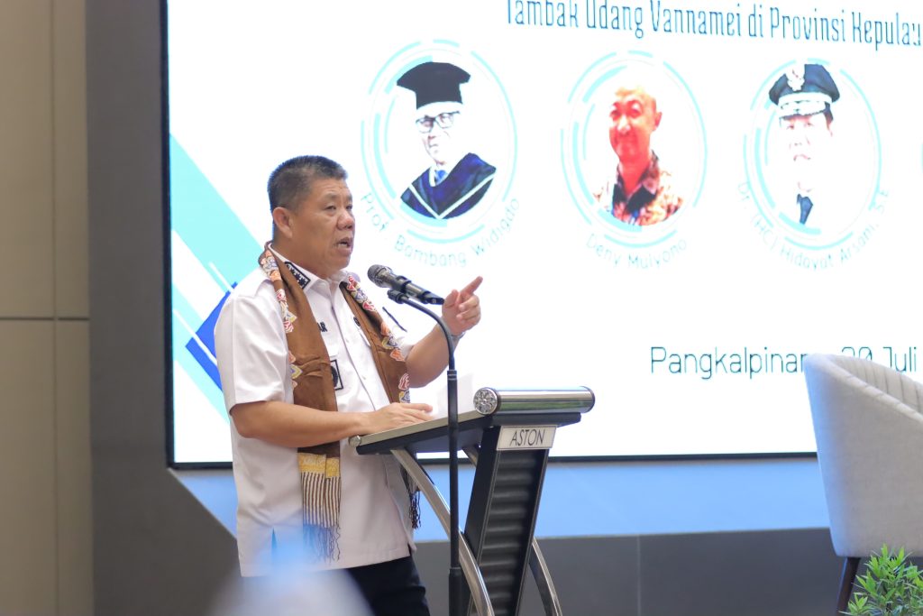 PANGKALPINANG – Gubernur Kepulauan Bangka Belitung (Babel), Hidayat Arsani, menghadiri kegiatan Sosialisasi Penerapan Cara Budi Daya Ikan yang Baik (CBIB) pada tambak udang vaname, yang digelar di Ruang Conference Center Hotel Aston, Rabu (30/7/2025). Kegiatan ini diselenggarakan guna memberikan pemahaman menyeluruh kepada para pelaku usaha tambak udang vaname, serta para stakeholder di sektor perikanan budi...